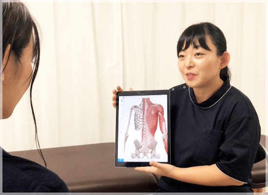 先生が明るくて、とても話しやすいです。痛い箇所に合わせて治療を行なってくれるので、すごい助かります。
