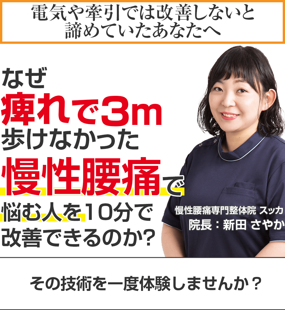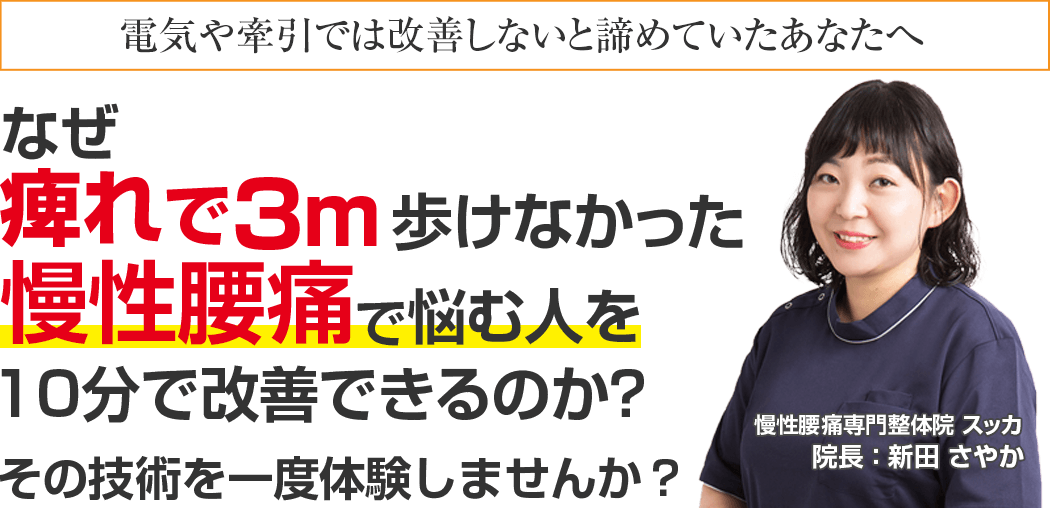 もしあなたが、少しでも腰痛の痛みや痺れでお悩みで少しでもよくなりたいと思うようでしたら腰痛専門整体院スッカにご来院ください。