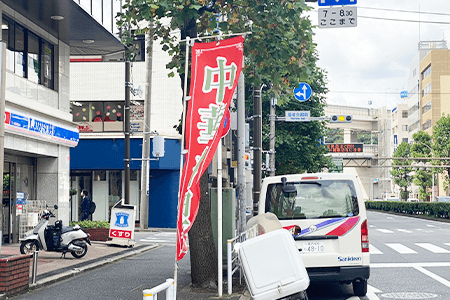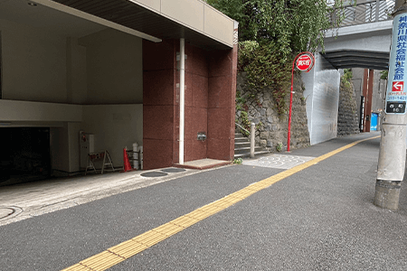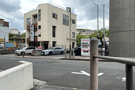 保土ヶ谷方向から鶴屋町3丁目交差点に向かい、「福祉会館前」の信号を左に曲がってすぐの角を右に曲がり進んで左にコインパーキング、少し先にもコインパーキングあり