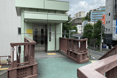 7川を渡り陸橋の下のエレベーターで2Fへ上がります。
