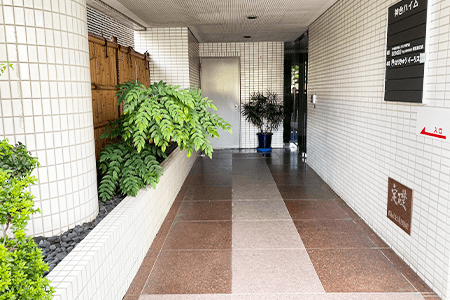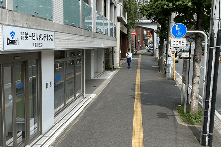9左に第一ビルメンテナンスがあり、赤い消火栓まで進みます。