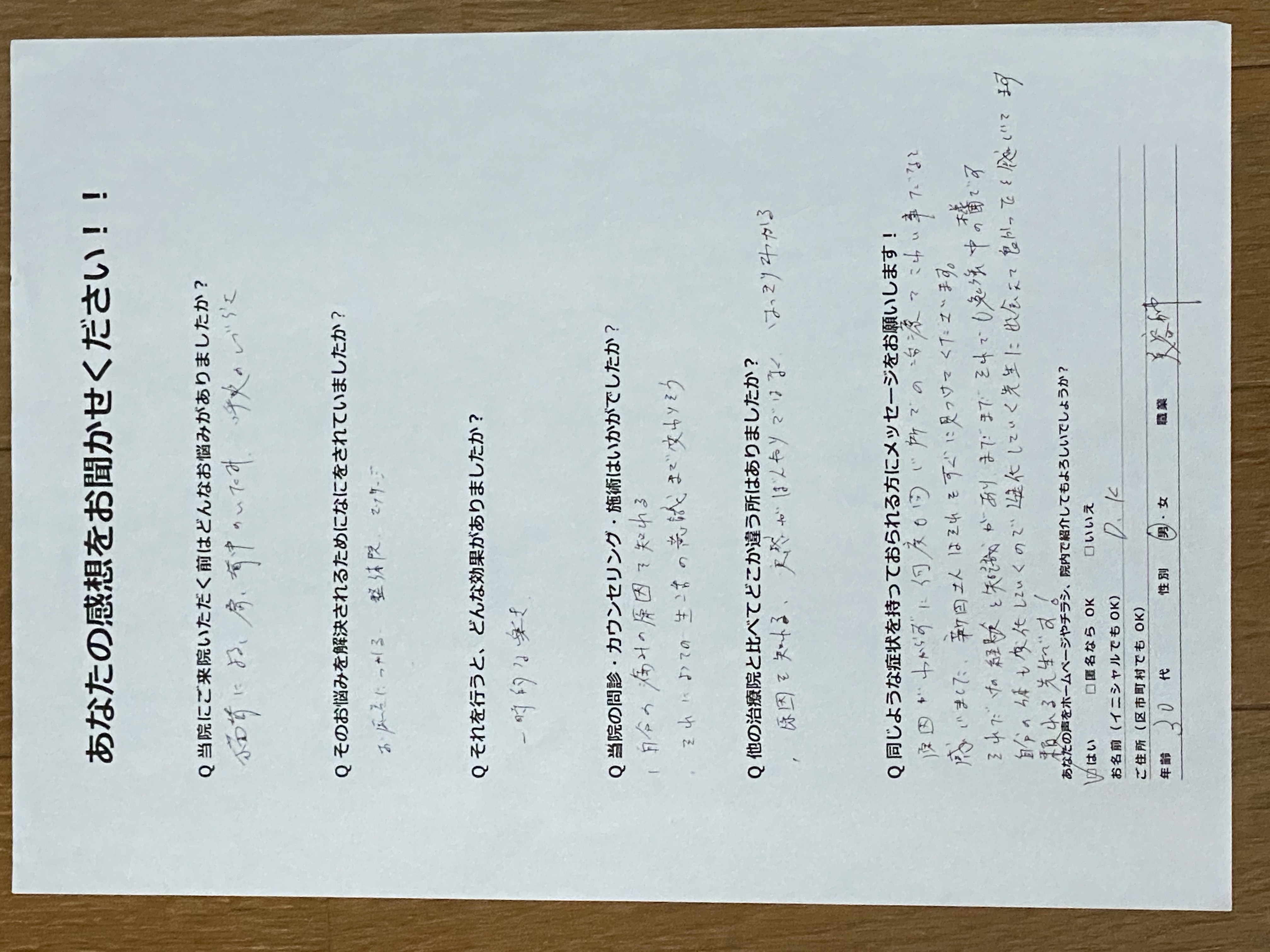 当院のカウンセリング・施術は、いかがでしたか?