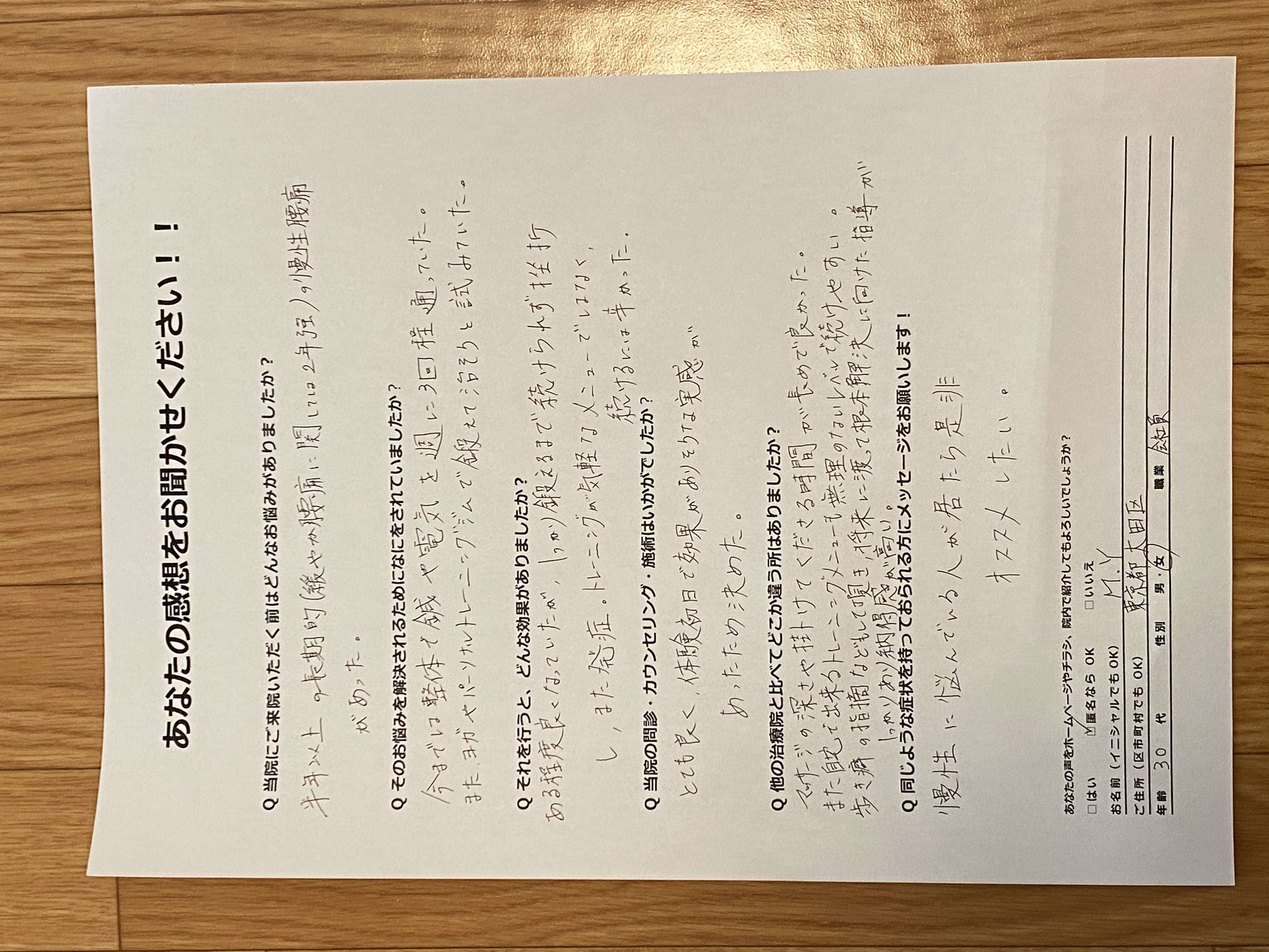 慢性腰痛が改善しました!