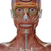 1.オレンジの枠の眉毛をマッサージしていき、緑の目の周りをマッサージするとリラックスするホルモンがでてきます。